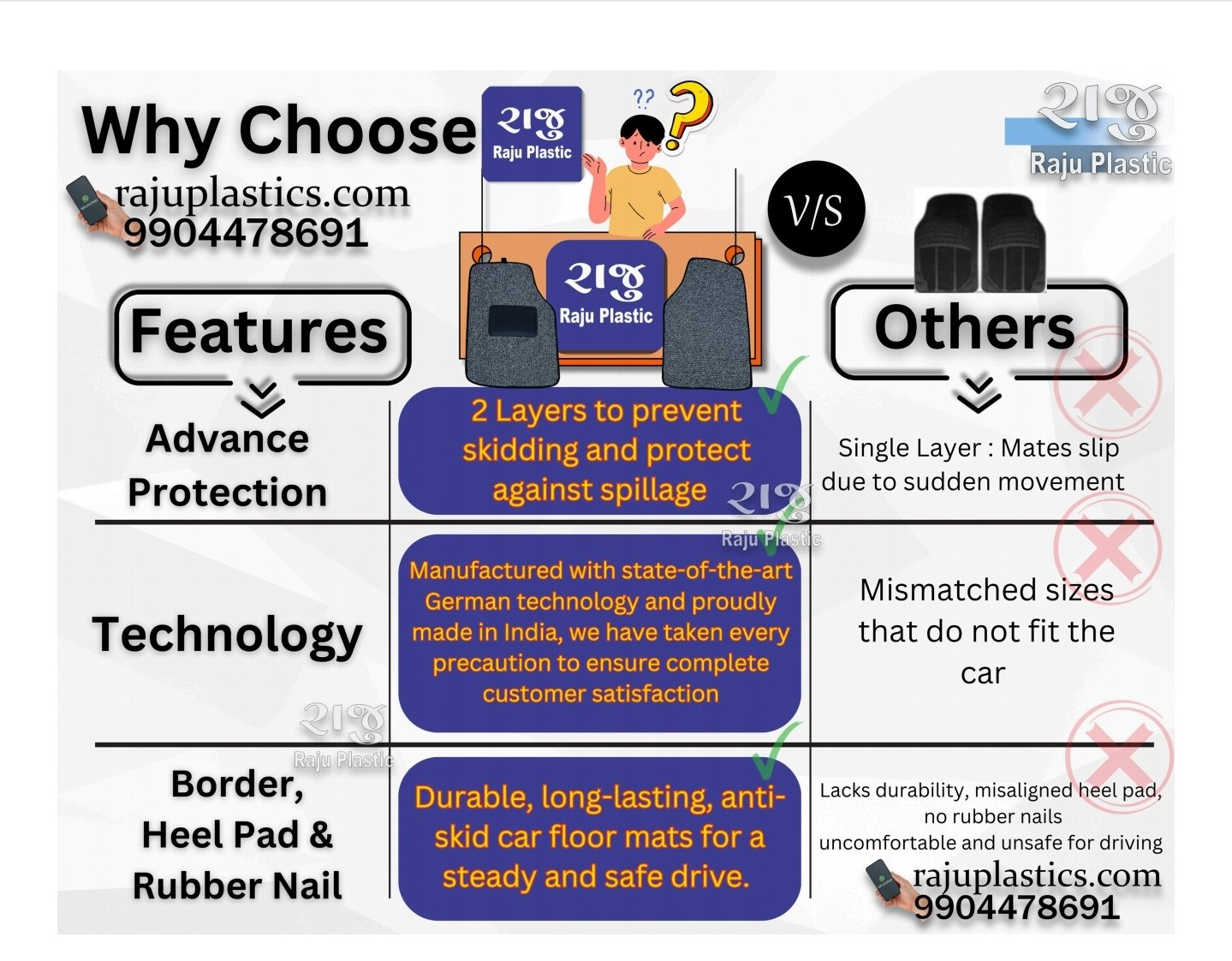 CAR COMPATIBILITY- Our car mats are compatible with all 5 seater cars like, Alto, Wagon R, Baleno, Swift, Dzire, S-Presso, Alto, Ignis, Ciaz, Santro, Grand i10 Nios, i20, i20 N Line, Aura, Verna, Venue Nexon, Punch, Altroz, Tiago,Tigor, XUV 300, Sonet, Glanza,Hybrid, Kwid, Triber, Kiger,Duster and all 5 seater Modles.