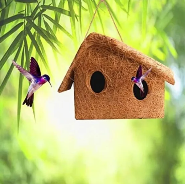 ●हमारा घोंसला नारियल की जटा से बना है, जो पक्षियों के लिए एक परिचित वस्तु है और उन्हें जल्दी से अपनी ओर आकर्षित करती है
